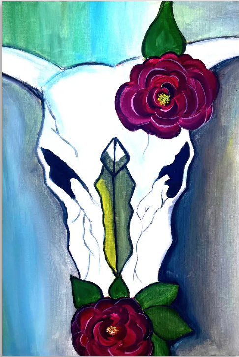 Tap into your creative side and join us for this rendition of O’keeffe’s “Cow Skull” with roses. Local artist, Nataly, will be guiding you through this paint and sip