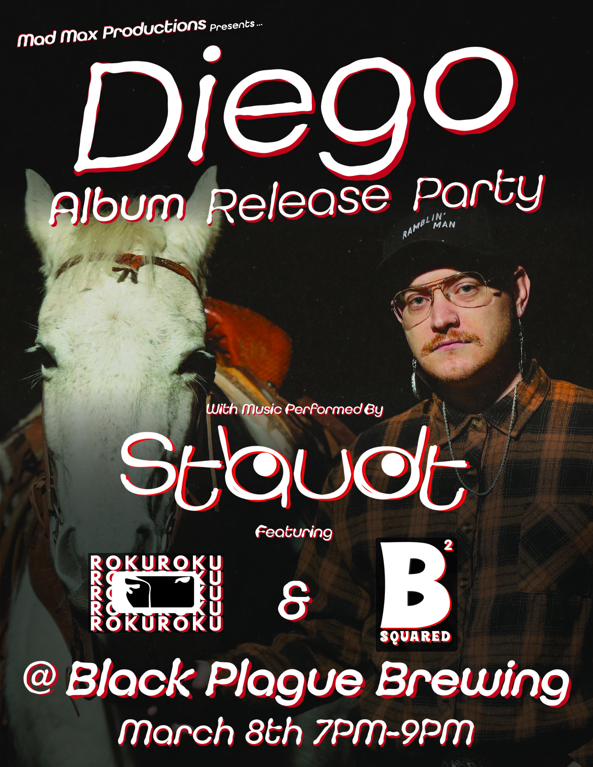 Come celebrate the release of the new album “Diego” with @staudtbandofficial and friends @rokuxii & @b_squared_music from 7-9pm