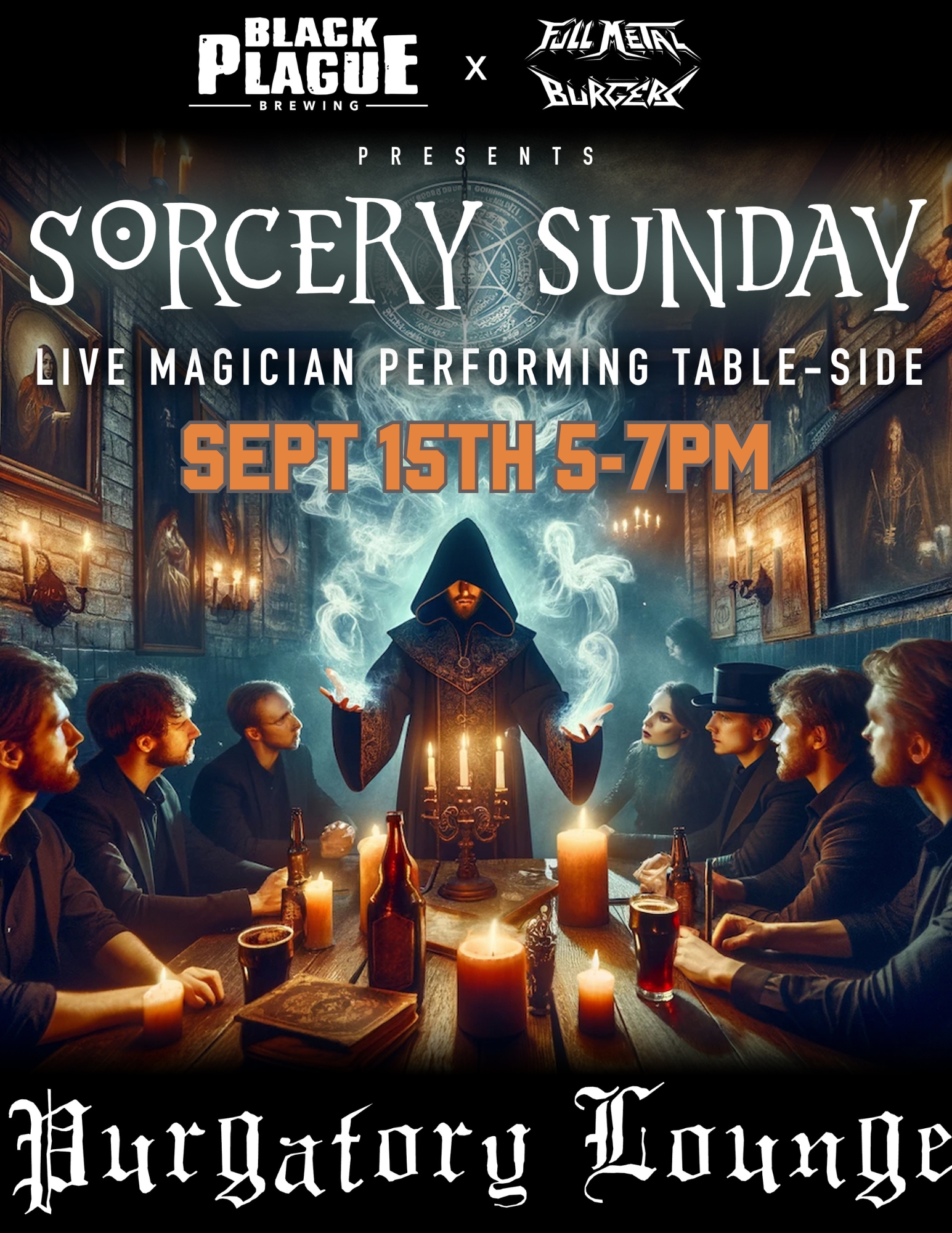 15sep5:00 PM7:00 PMFeaturedSorcery Sunday 5-7pmLive Magician performing magic table side