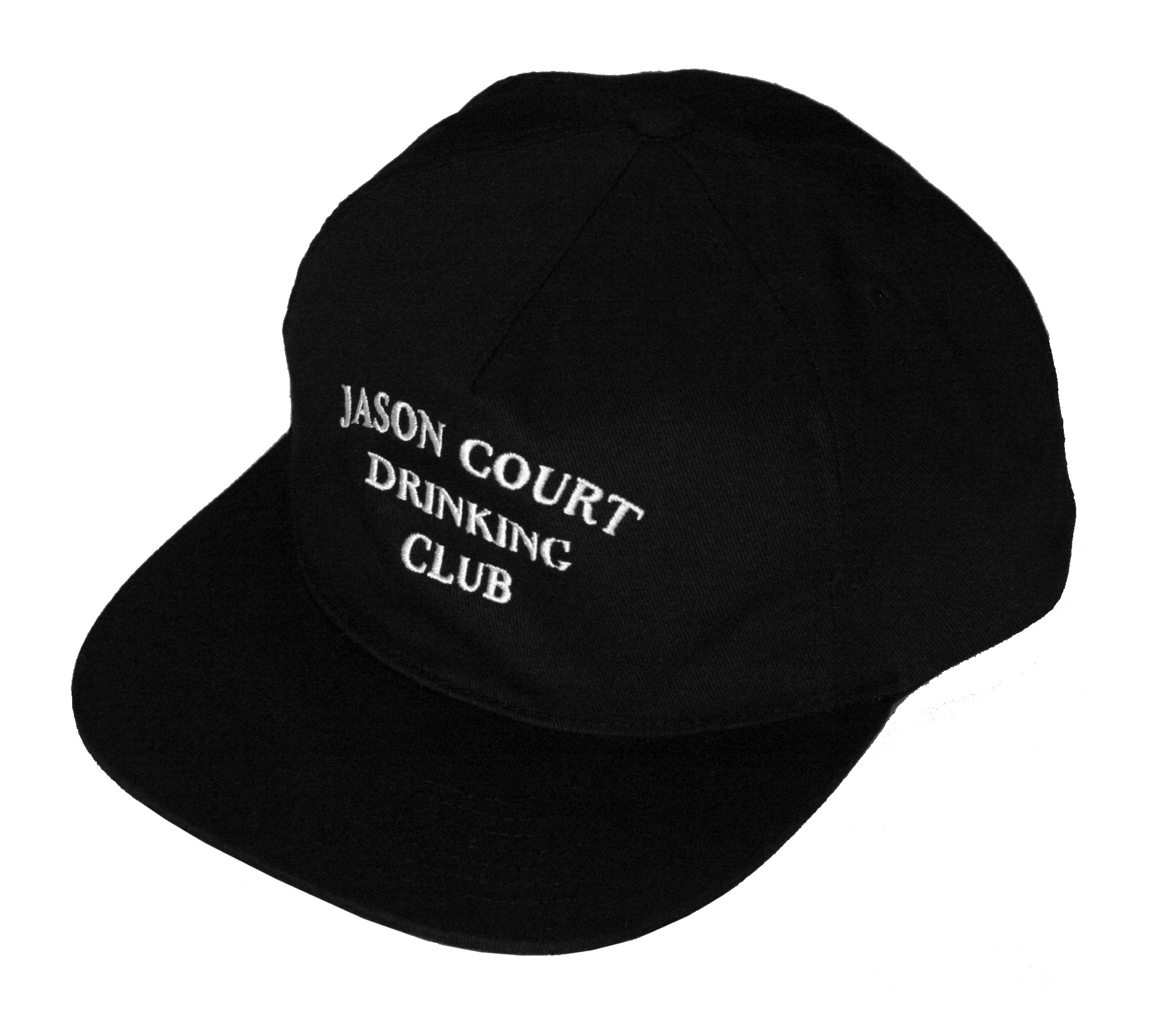 - Limited Edition ‘Jason Court Drinking Club’ Snapback hat – features black cotton, mid-height unstructured crown, flat bill with classic snapback. White embroidery on the front. Premium Quality. Only available to members of the Society. A favorite among locals and supporters.