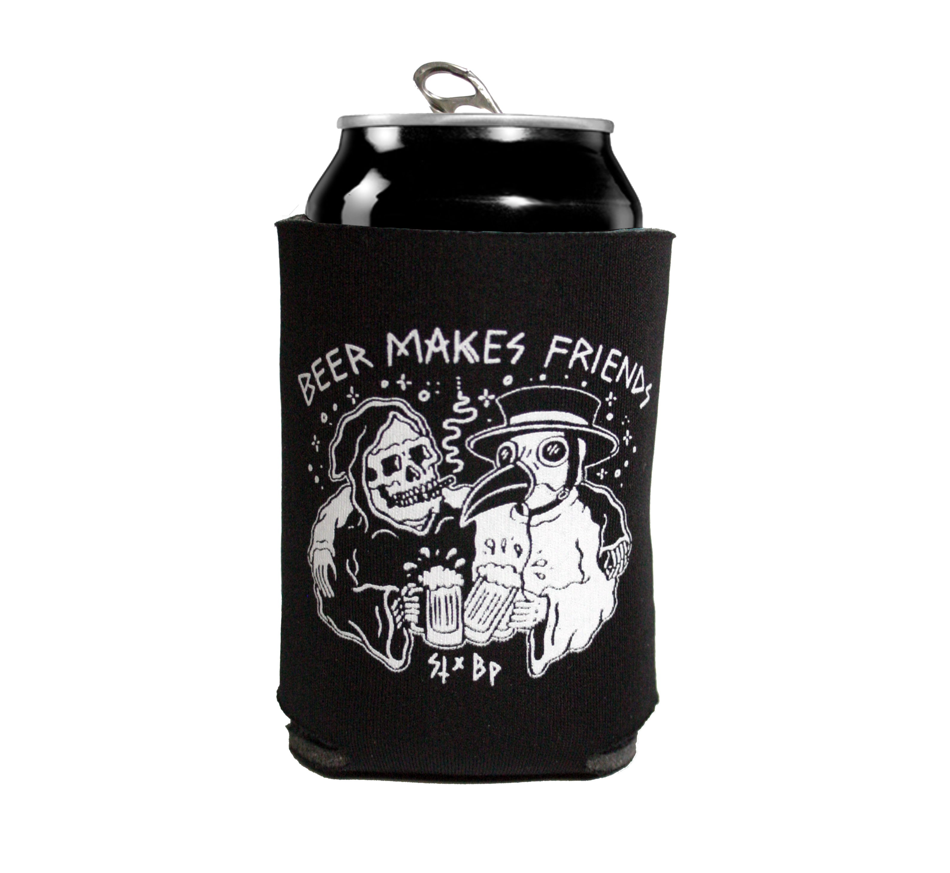 Keep your can cool with this Limited Edition BLACK PLAGUE Brewing coozie. Original “Beer Makes Friends” artwork from local Oceanside artist, Sketchy Tank.