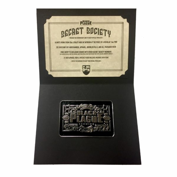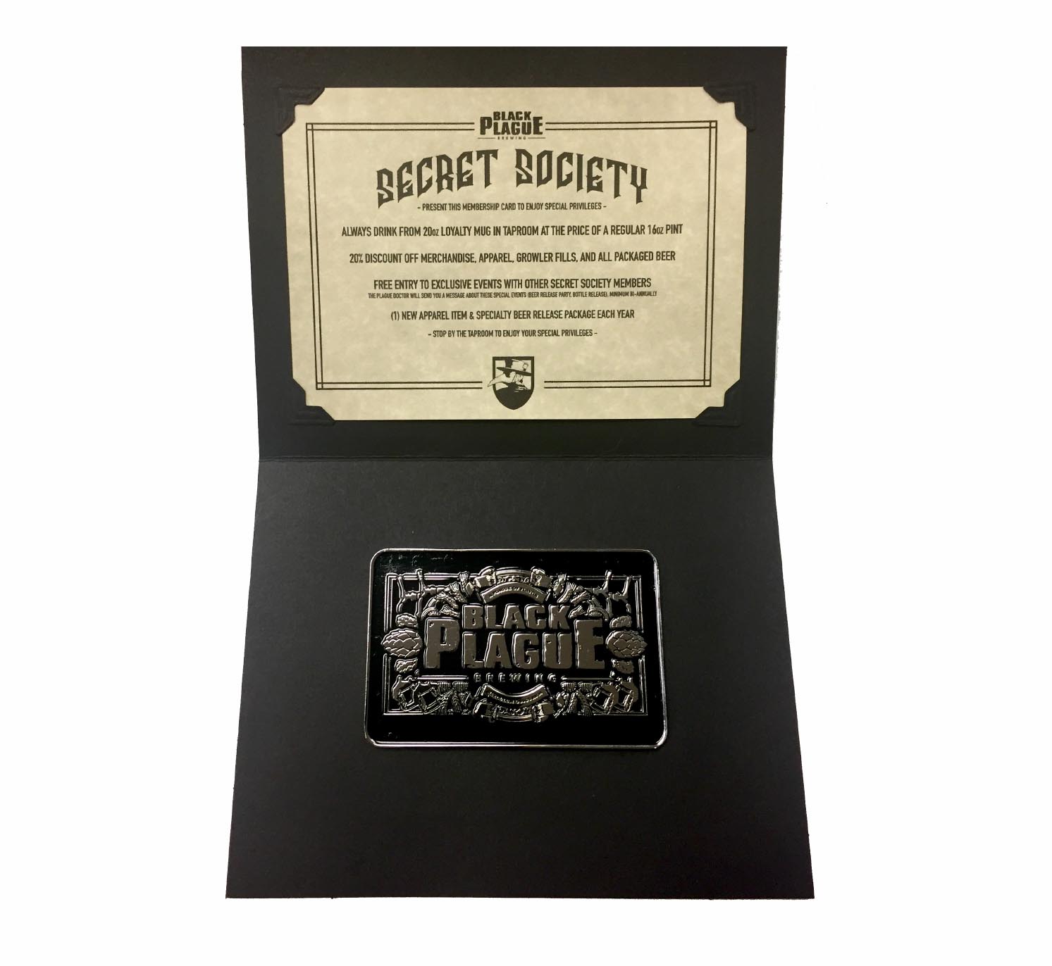 - Secret membership code name chosen by the Plague Doctor himself, presented in a framed certificate to be displayed in the BLACK PLAGUE taproom.