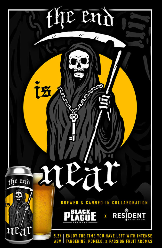 Brewed in collaboration with our comrades at Resident Brewing, we’ve crafted this death-defying Pale Ale to comfort you til the end. Using modern brewing techniques and medieval sorcery, this beer is brimming with intense aromas of tangerine, pomelo, and passion fruit on top of a luminous liquid layer of premium malts for a crisp, medium-bodied finish.